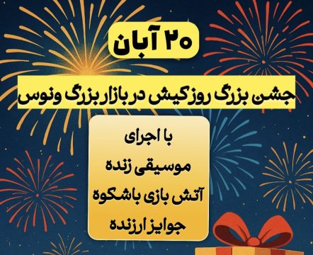 🎉 جشن بزرگ روز کیش در بازار بزرگ ونوس!۲۰ آبان، جزیره همیشه زیبا غرق در شادی و نور میشه!با اجرای موسیقی زنده، آتشبازی باشکوه و